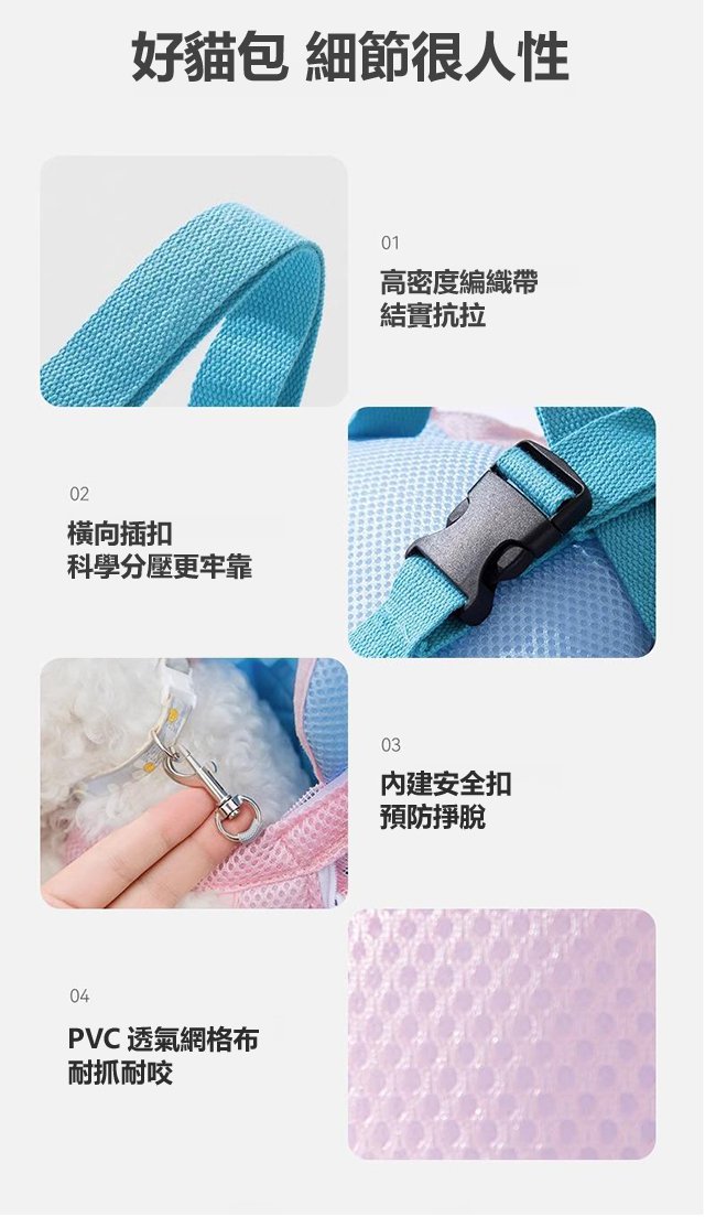 11分鐘前寵物胸前包狗包便攜式旅行雙肩背包外出貓咪四腳背包貓包 - 【團購促銷 三入組】-NT$1998