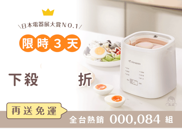 12分鐘前Pink Bunny智能煮蛋機智能控溫烹煮,營養美味輕鬆上桌 - Pink Bunny智能煮蛋機1入組 NT$1090